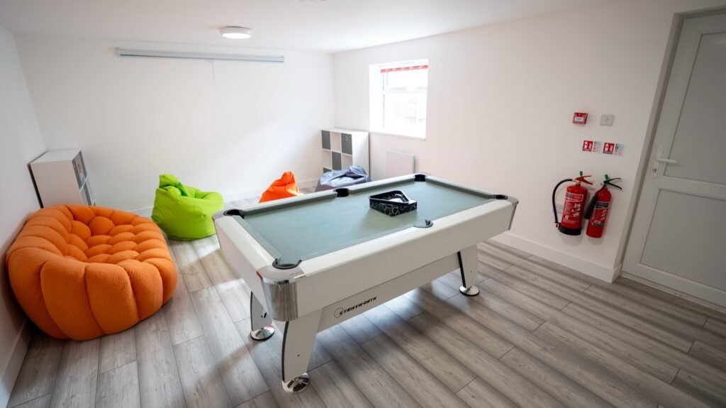Spenser House also benefits from a large garden and a dedicated games room with leisure facilities such as a pool table and projector, promoting positive engagement and enjoyment.